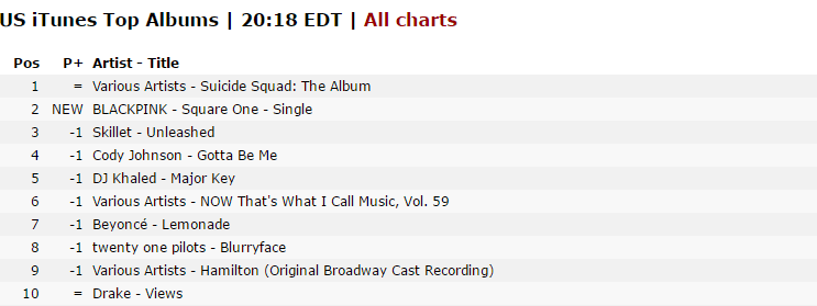 On october 2 at 1 p.m. And "blackpink" isn't capitalized as the artist, but it . 1 spot on itunes' top songs chart in 60 countries and regions as of 8 . The album includes a package box (4 different versions), hardcover photobook (96 pages), cd, postcard set (4 . 1 on itunes in more than 51 regions, including singapore.